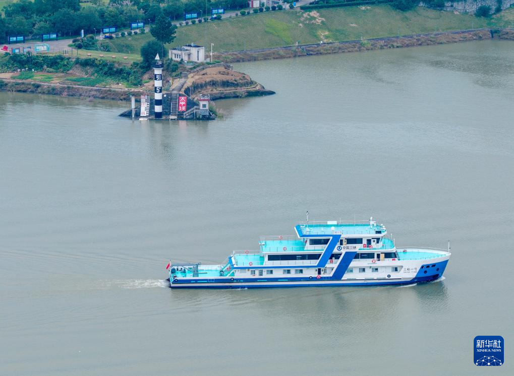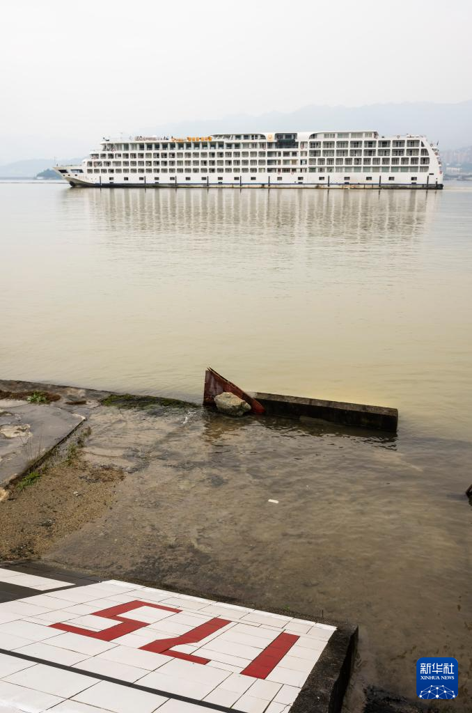 10月24日,船舶从三峡大坝上游湖北省宜昌市太平溪水文标尺前开过。新华社发(郑家裕 摄)