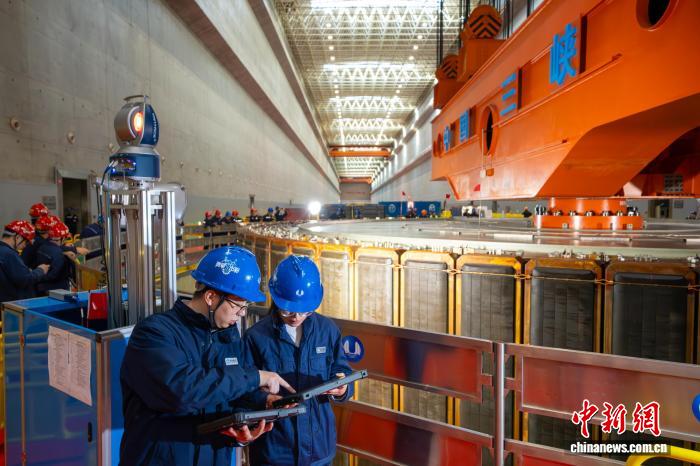 据三峡集团消息,世界最大清洁能源走廊2025-2026年度岁修工作已全面展开,本轮岁修覆盖长江干流葛洲坝、三峡、向家坝、溪洛渡、白鹤滩、乌东德六座梯级电站。在三峡电站,多个高新技术装备用于检修工作,全面提升检修质量与效率,为今冬明春电力安全稳定供应提供坚实保障。图为检修人员用三维扫描仪检测三峡电站机组接力器活塞缸内壁。胡九思 摄