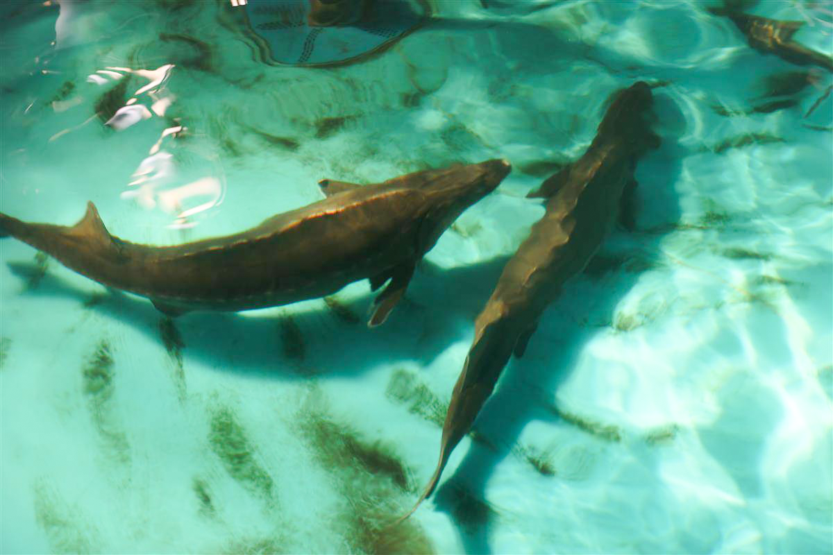 1月13日,在位于湖北省宜昌市的长江珍稀鱼类保育中心,我国首批全人工繁殖的子二代中华鲟鱼体态健硕。