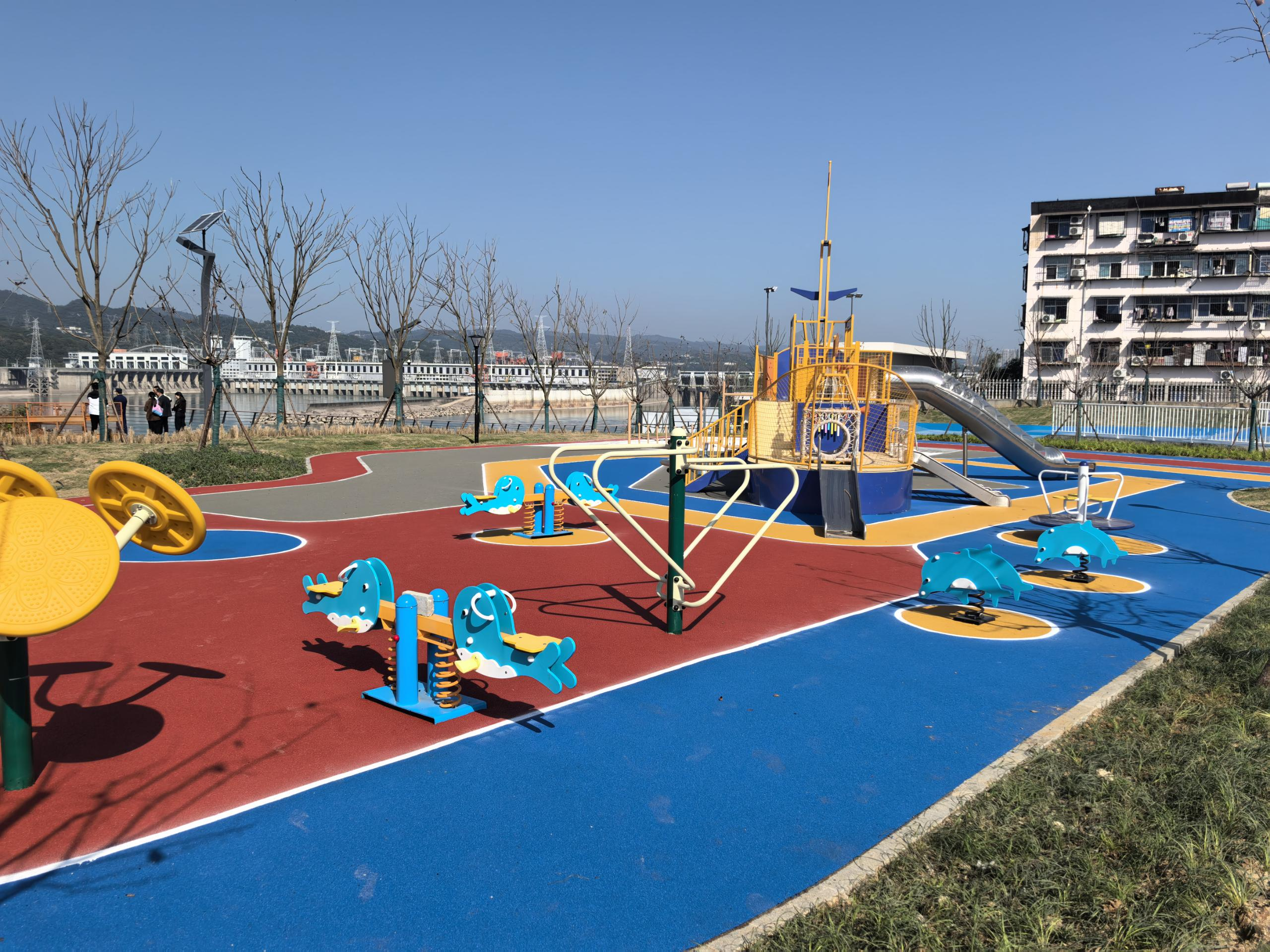 沿江生态步道一旁的小型儿童游乐场。摄影:李兴莲