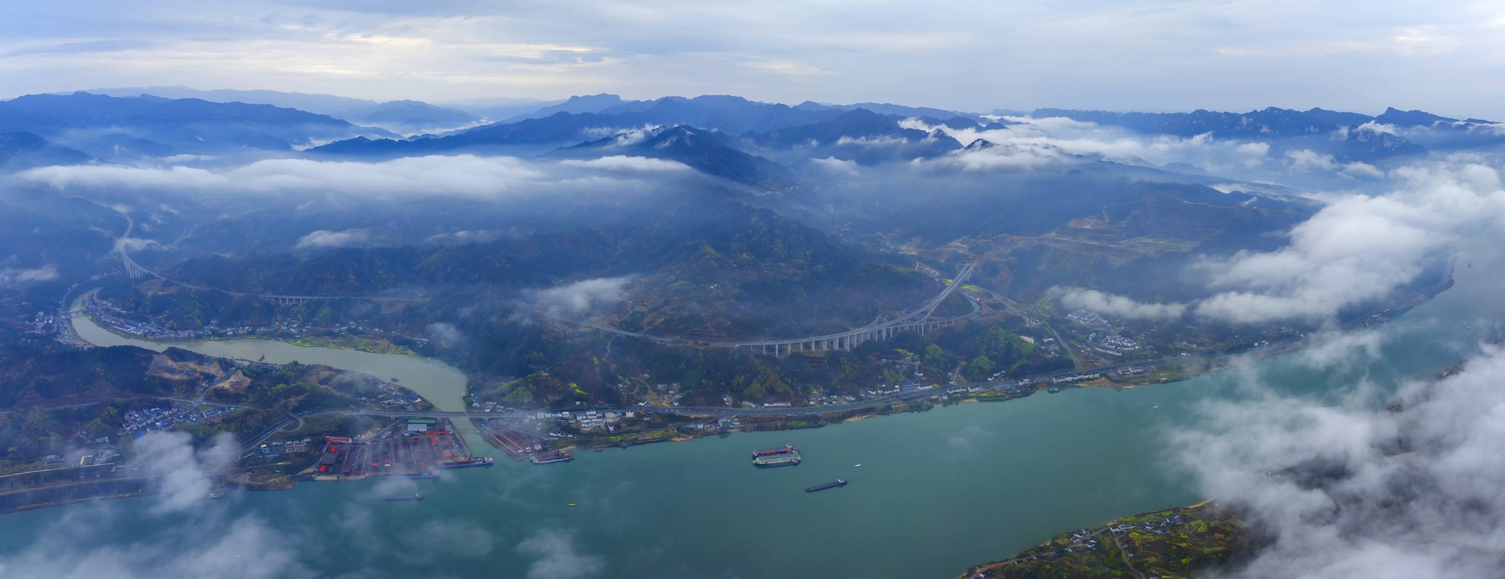 雨雾中的乐天溪江段,既展现了长江航运的繁忙活力,又彰显了三峡区域生态与人文交融的独特魅力,成为春日里三峡坝区一道别样的风景线,尽显长江生态之美与坝区发展之姿。