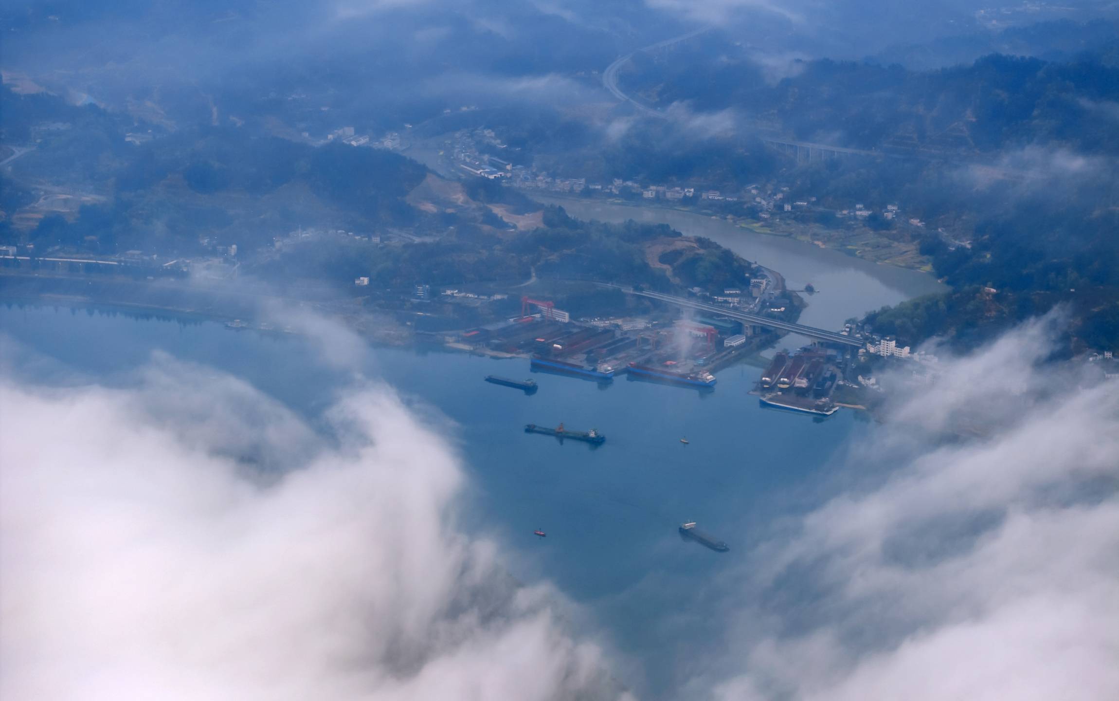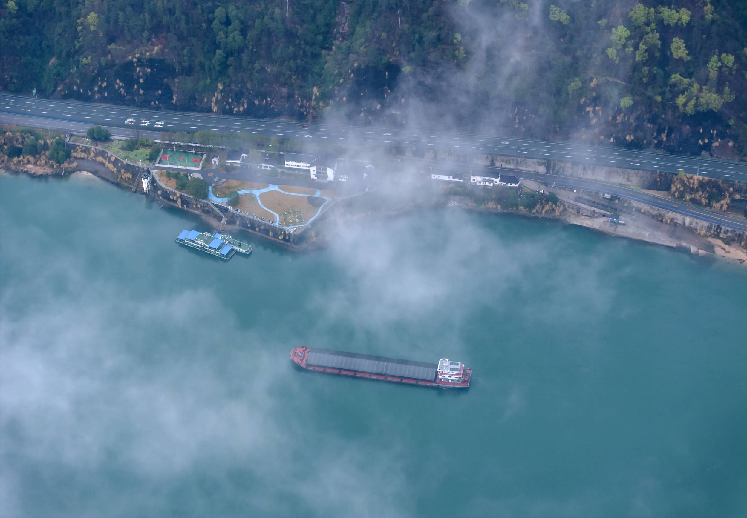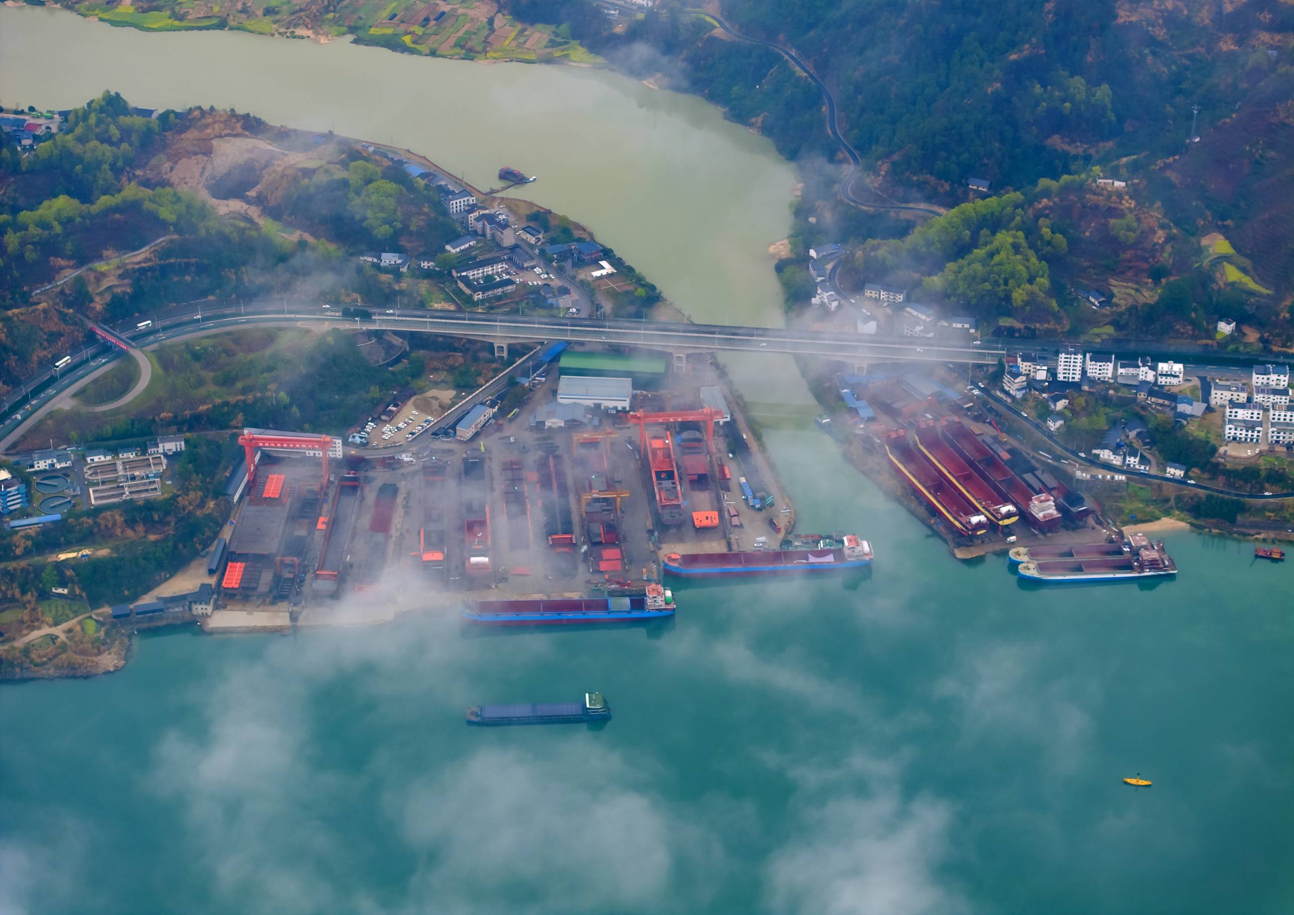 连日来,这片江域时而细雨绵绵,江面水汽氤氲;时而浓雾弥漫,天地间一片朦胧。沿江往来的上下行船舶,在雾霭中缓缓穿行,与长江北岸的生态风光完美相融。岸边的乐天溪镇错落有致,船厂的设施静静矗立,江北高速路蜿蜒延伸,错落的民舍点缀其间,这些人文景致在大雾的笼罩下,褪去了平日的清晰轮廓,多了几分朦胧之美,与青山绿水相依,尽显磅礴壮观。