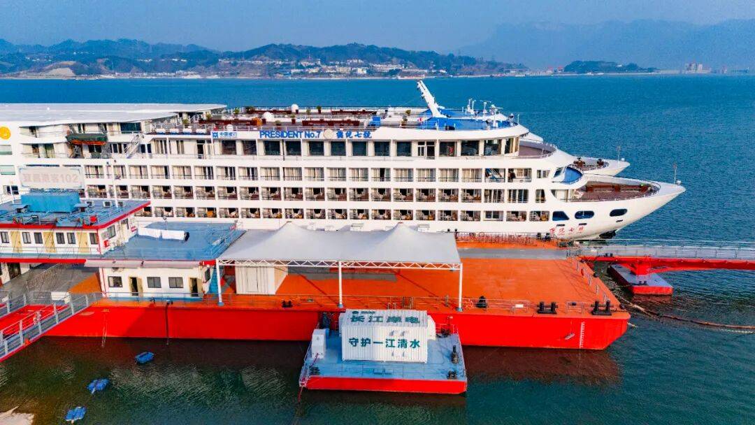 夜幕降临,全球最大的纯电动游轮“长江三峡1”号安静地驶出宜昌港。游轮搭载了7500千瓦时的电池组,相当于100辆电动车电池总和。为保障其充电,国网宜昌供电公司创新研发纯电船舶“高压充电”技术,同时在沿途停靠港口提供“低压补电”服务,保障纯电游轮畅行无忧。