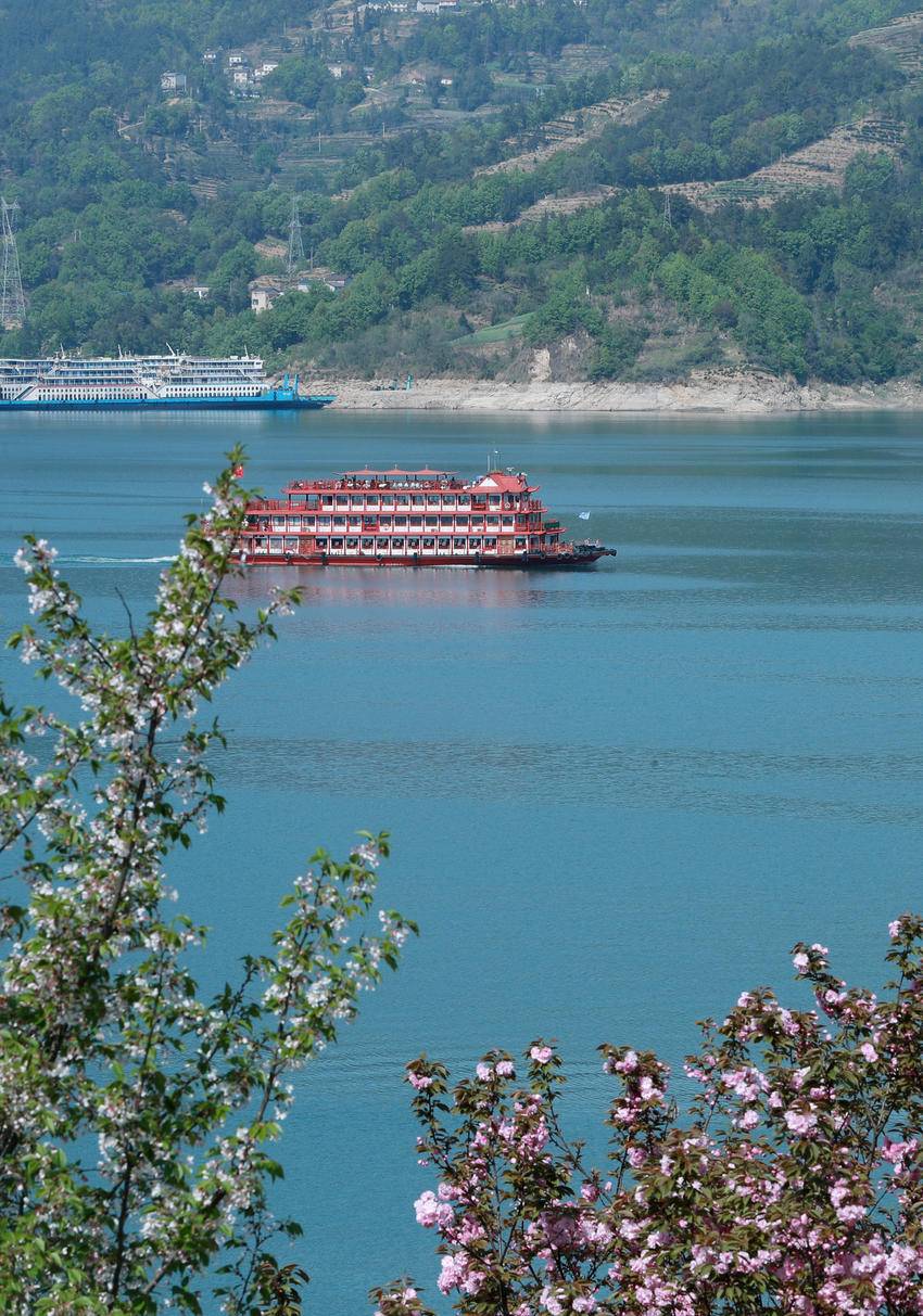 4月3日,三峡画廊6号游轮行驶在三峡大坝坝前湖北省宜昌市秭归县望江公园外沿水域。