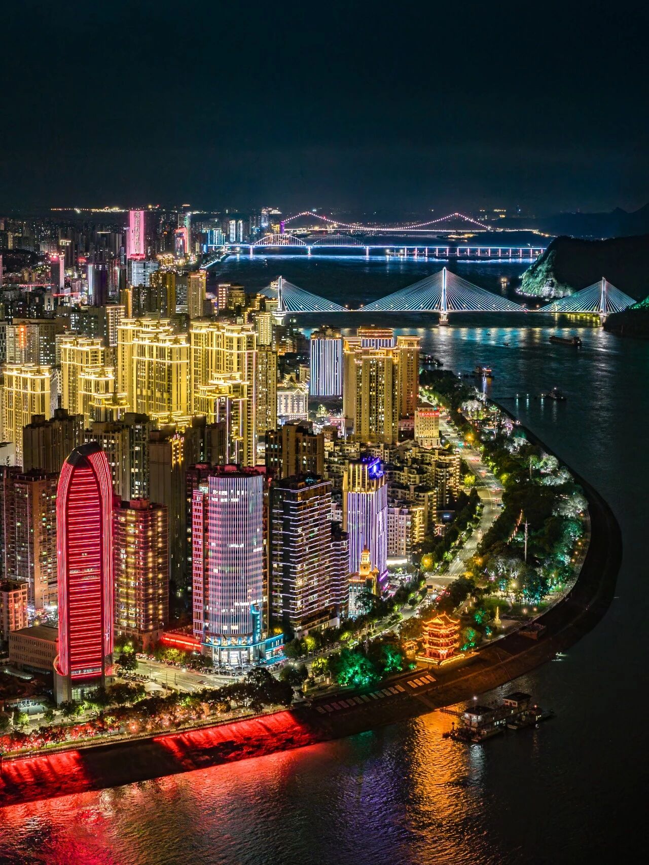 宜昌沿江夜景。(通讯员 刘昆 摄)